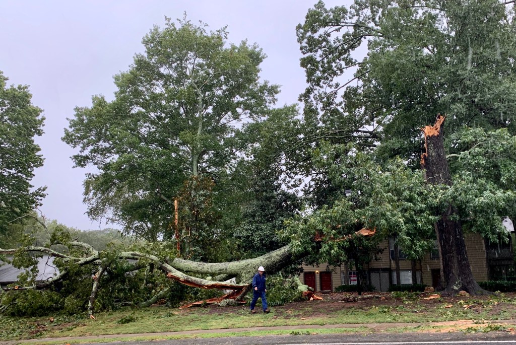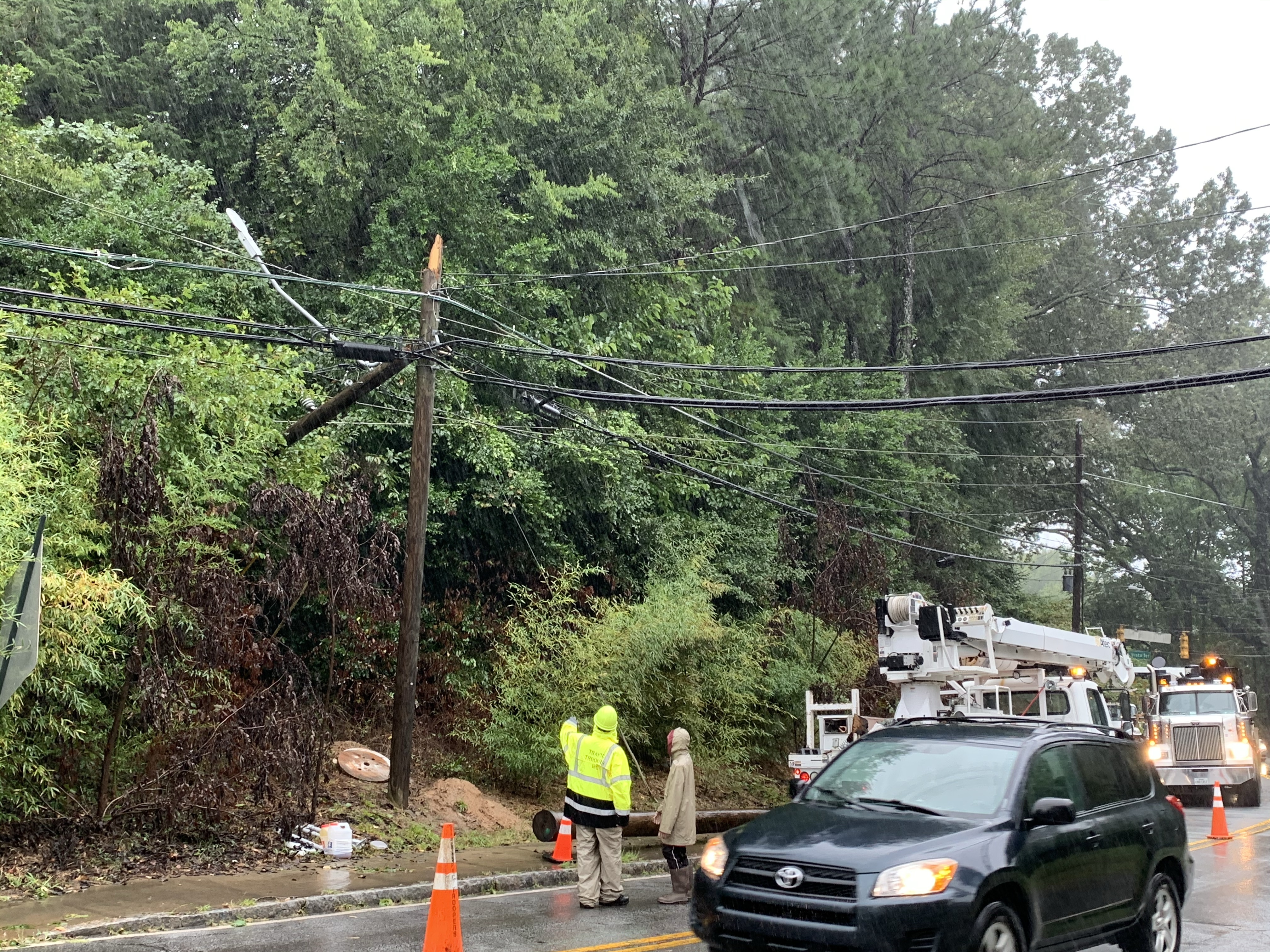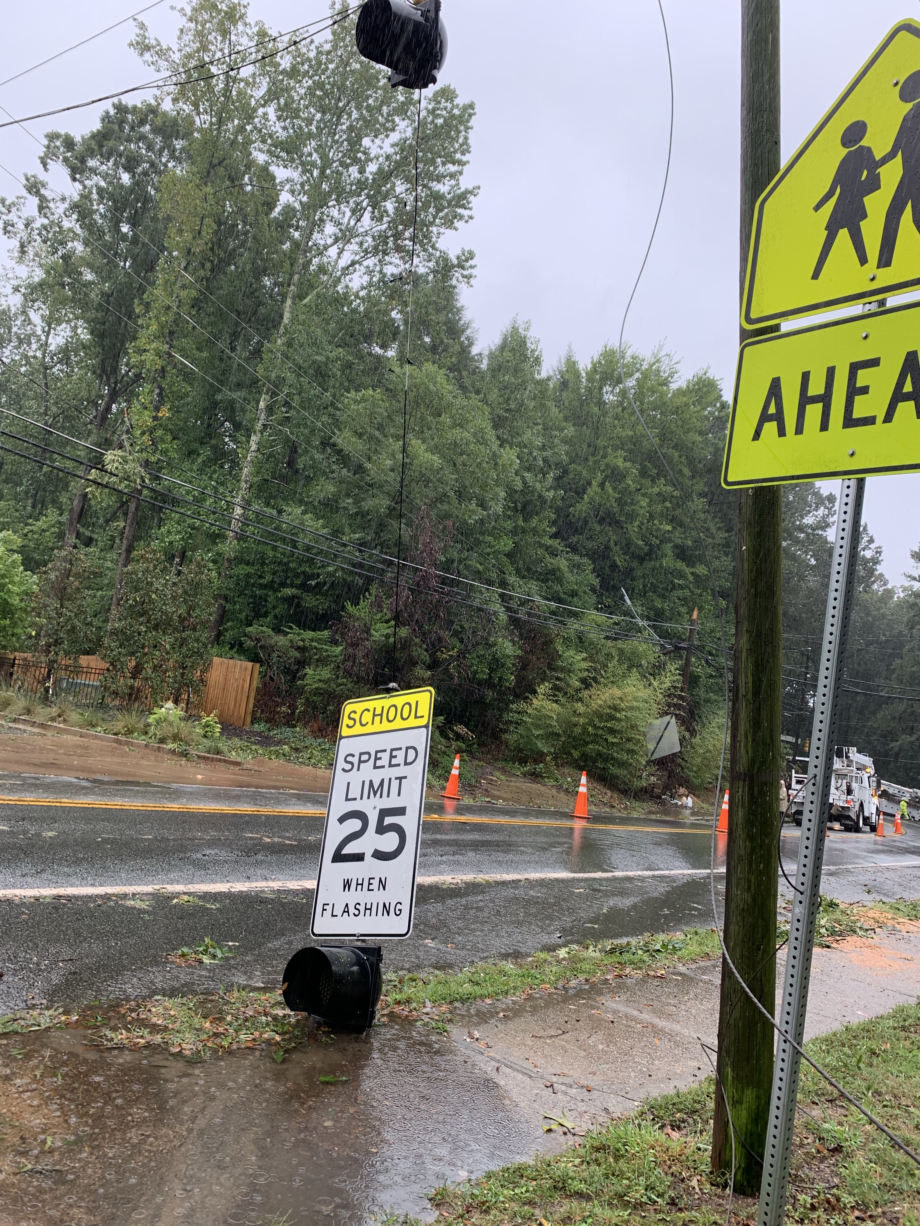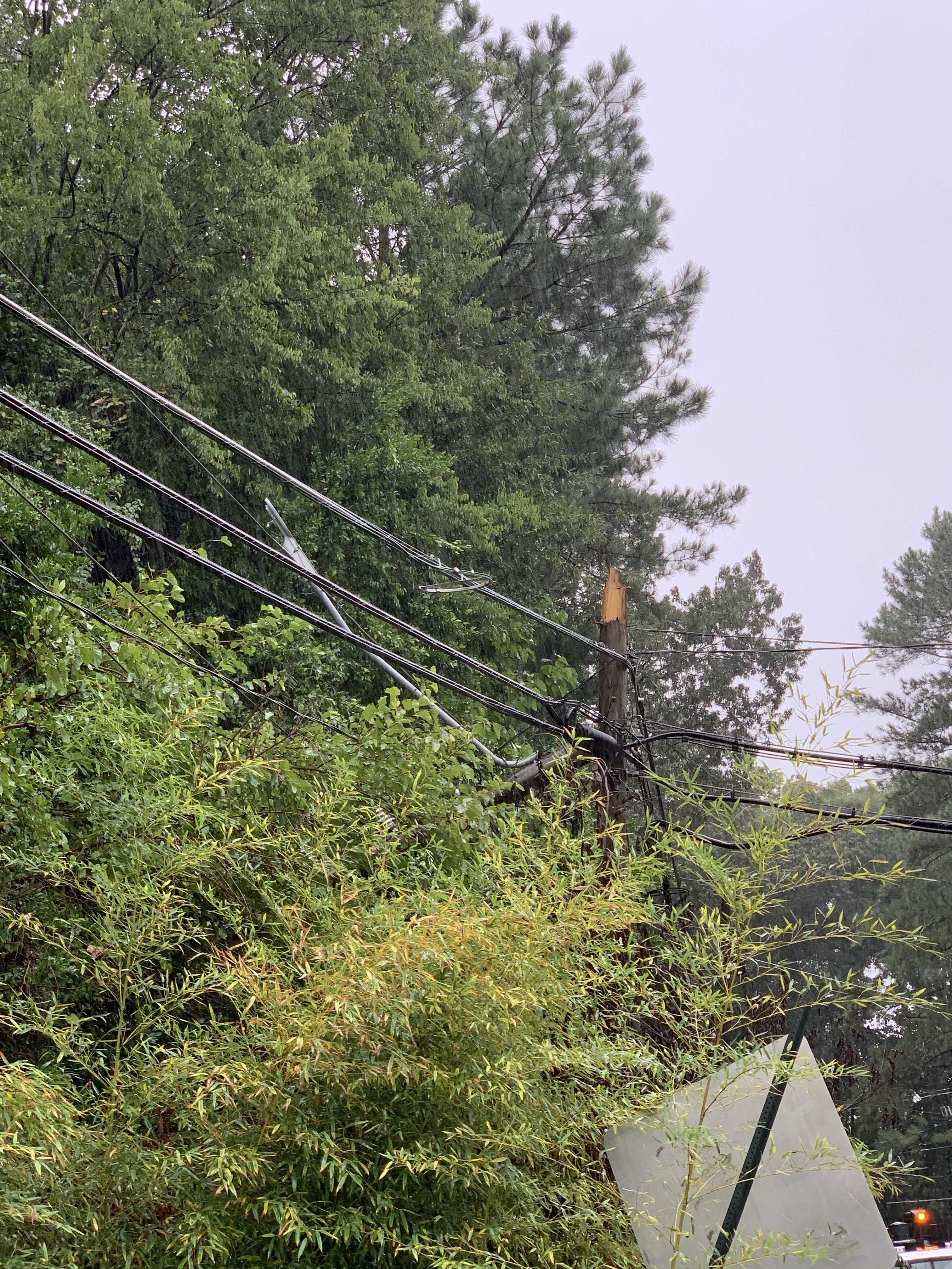Some photos of the tree that took out power in the neighborhood. I spoke to one of the workers at 9am. They have to replace 2 poles and string a lot of wire. It will be awhile longer but they are working on it. I thanked them for being out in the rain to get us our power back! Check out the size of the tree compared to the man next to it, and the damage it did to the transformer it crushed.